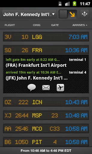 • Easily share flight info with friends and family via Twitter, Facebook, SMS and email